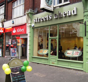 You can find Streets Ahead on the High StreetWow, this is a tricky one. I confess that I was not even aware of the expression until a reader named Gareth commented, “Is ‘streets ahead’ well-established in American sources? Earliest OED reference is 1885 in Ireland. Recently a character in NBC’s ‘Community’ tried to ‘coin the phrase’, without realising it already existed (for the backstory see http://earnthis.net/2010/04/community-is-streets-ahead/.)”
