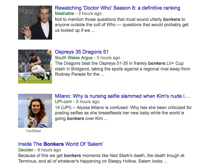 That quote doesn’t even show up when you search for “bonkers” in the Times “Chronicle” app: