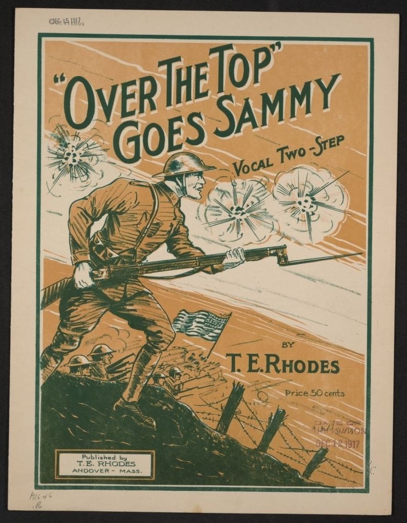 But a Britishism it is. The OED labels the phrase “chiefly British” and defines it as: “To an excessive or exaggerated degree; beyond reasonable or acceptable limits; too far.” The OED also notes another, earlier meaning of “over the top,” stemming from World War I trench warfare: to literally climb over the top of a trench or parapet and go into battle. This took off in America, generating (as listed in the Library of Congress) no fewer than six popular songs called “Over the Top,” plus this one: