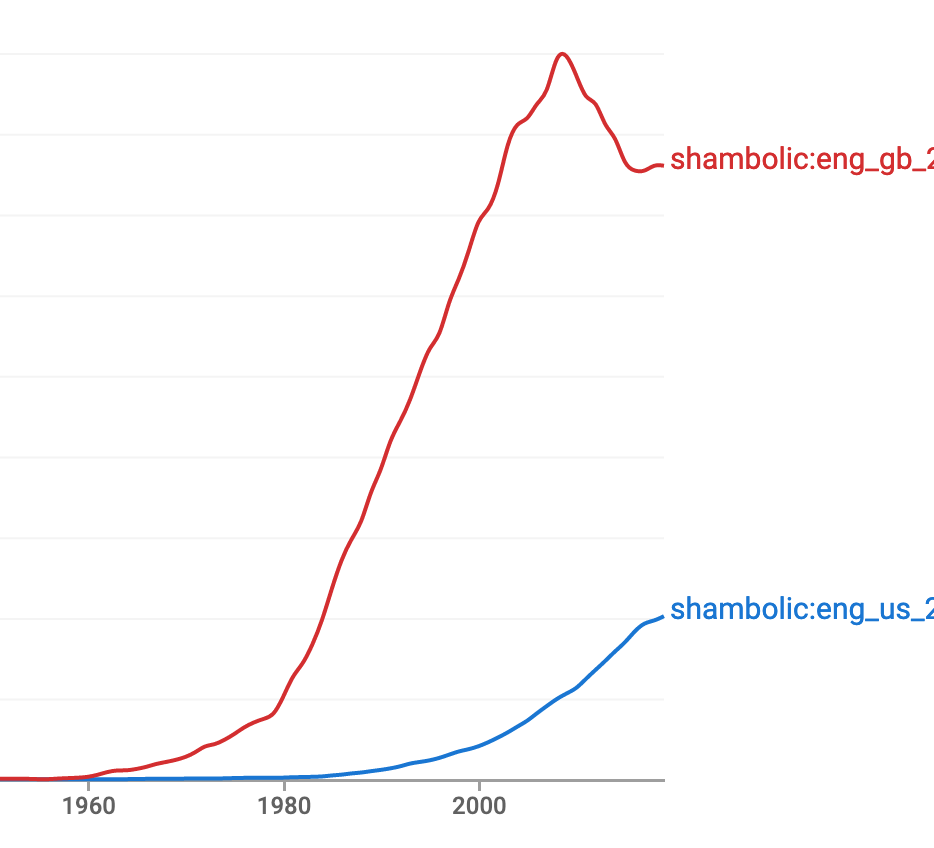 4. Shambolic rhymes with ‘carbolic’, a common word for over a century. I can’t think of other rhymes for those two, so perhaps carbolic blazed a trail for shambolic.