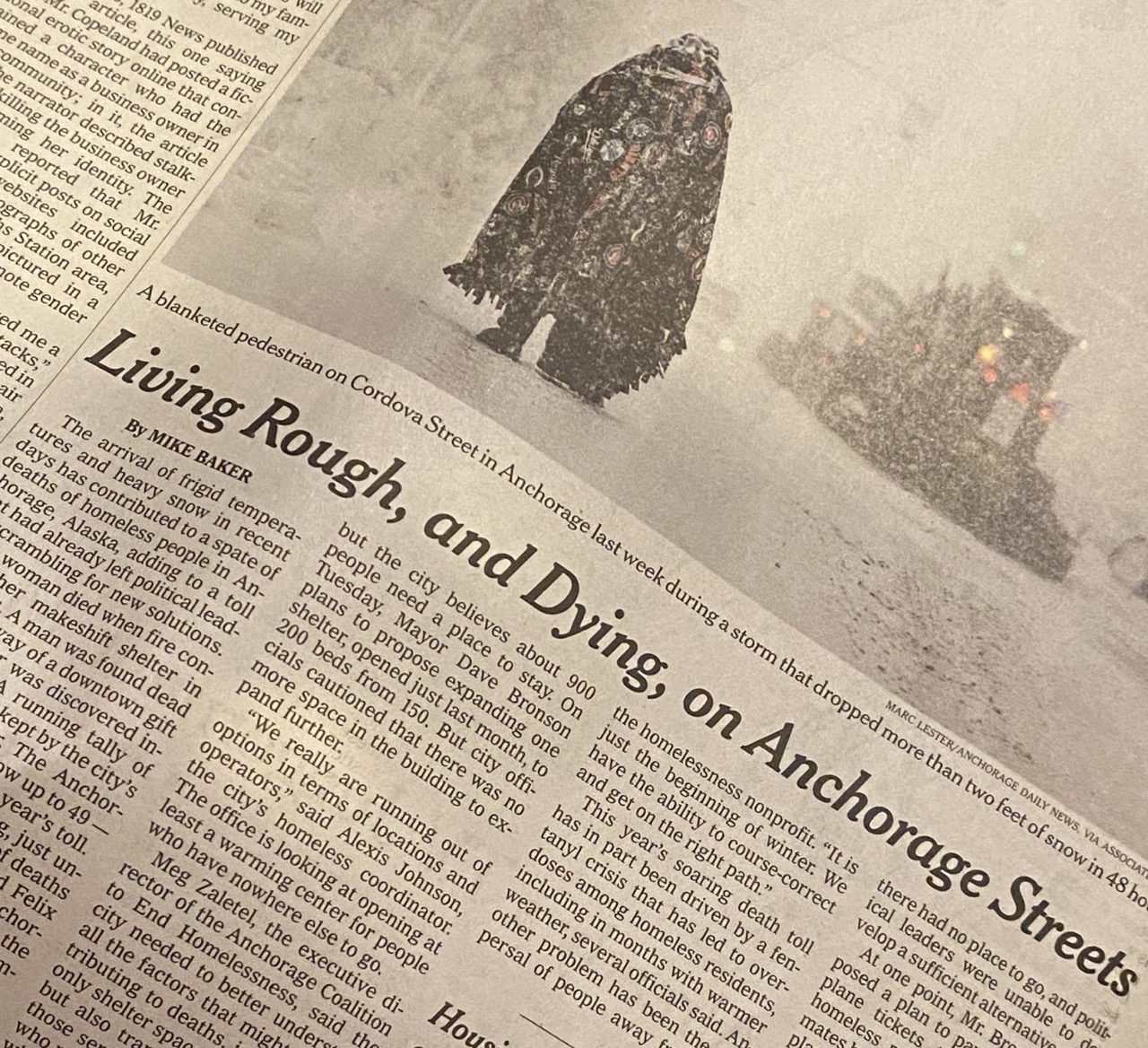 As for U.S. use, I’ll first note that Americans have long said “live rough” in the broader sense of a bare-bones, rough-and-tumble existence. (And if you weren’t familiar with the other meaning, the Anchorage headline could be read that way.) The more narrow sense of “sleep rough” and “live rough” to mean an unsheltered existence started cropping up in the Times about twenty years ago. Here’s are some quotes: